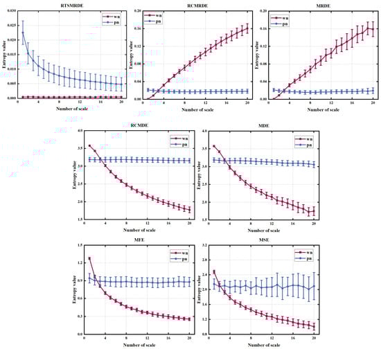 2.5. Comparison of RTSMRDE and Other Entropy Methods Using White Noise and Pink Noise