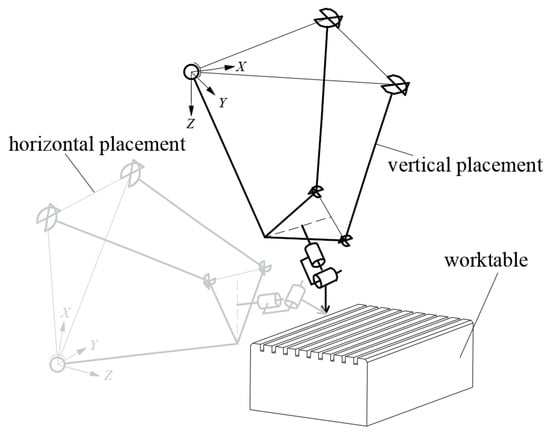 Because of high stiffness and good bearing capacity, parallel mechanisms have wide application prospects in the machining field [1,2,3,4]. Despite these advantages, parallel mechanisms also have the obvious disadvantage of poor dexterity and small workspace [5,6,7,8]. Redundancy has been shown to improve the mechanical performance of parallel mechanisms, but control challenges also arise with the introduction of redundancy [9]. On the contrary, serial robots generally have the advantages of good dexterity and a big workspace. The hybrid robot with the merits of both parallel robot and serial robot has great potential in polishing operation [10], pose adjusting system [11], prosthesis and external exoskeleton [12], machining field [13,14,15], etc. One of the most representative hybrid robots is the 5-DOF hybrid robot that consists of a 3-DOF 2R1T (two rotational DOFs and one translational DOF) parallel mechanism and a 2-DOF serial rotating head, such as the Ecospeed [16], Exechon [17] and Tricept [18,19] robots.