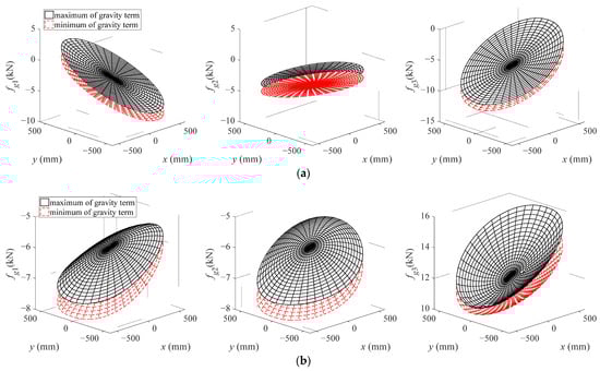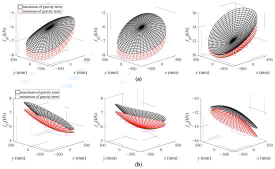 Distributions of gravity term of driving force in the middle layer of the workspace: (a) double limbs on the top; (b) double limbs on the bottom.
