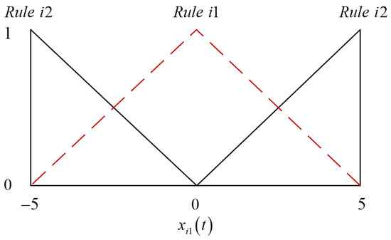 Theorem 2. For the given positive definite matrices , , and, if there exists , , , , , , , , , , and the following conditions hold, the fuzzy controller (5) is considered to be the CCC for system (6) with and .