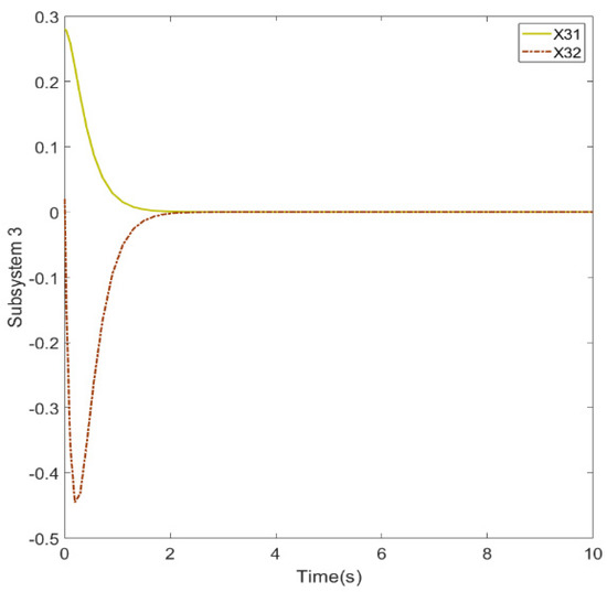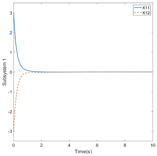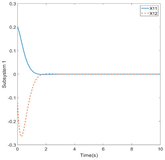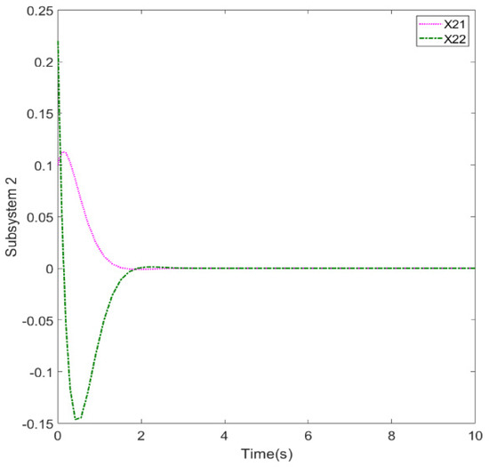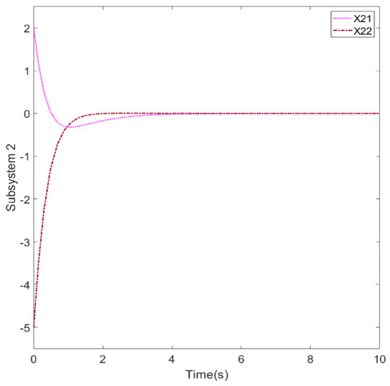 Figure 7, since two different states are included, we designed different initial conditions to demonstrate the effectiveness of the controller. However, the initial evolution of the system will also have different results due to the different initial conditions, system matrices, and controller gains.