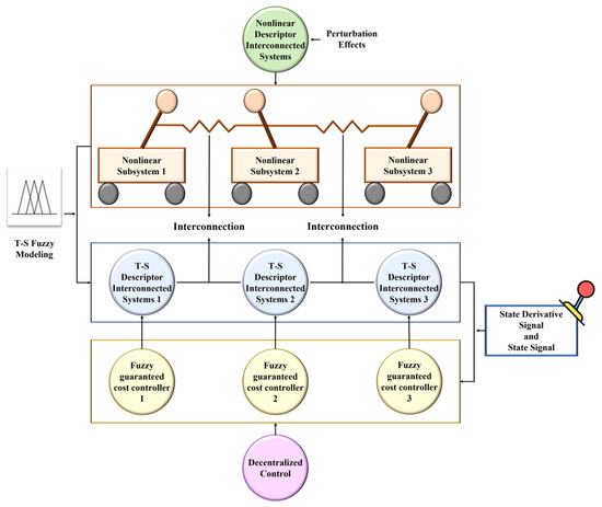 18]. Moreover, the T-S DIS is proposed because it can not only describe a physical model more accurately than the T-S fuzzy regular system but also reduce the computational complexity of the method. The application of T-S DIS is diverse and spans various industries, such as robotics, smart grids, autonomous vehicles, and many other areas that involve complex and interconnected processes. The ability to model, control, and optimize these systems using T-S fuzzy modeling and control techniques opens up new possibilities for automation, efficiency, and performance improvement. In addition, some results of the T-S DIS are given. For instance, the robust decentralized static output-feedback control for a T-S DIS was investigated in [