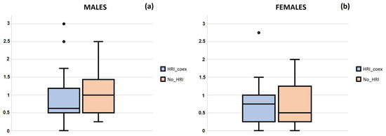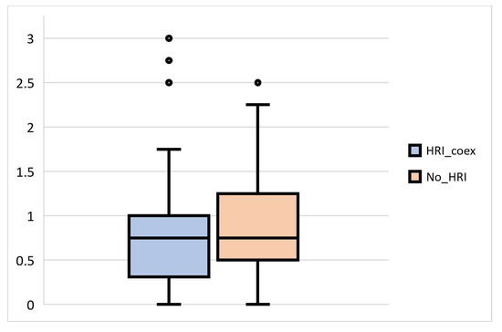 - H1: the median of HRI_coex is not equal to the median of No_HRI.