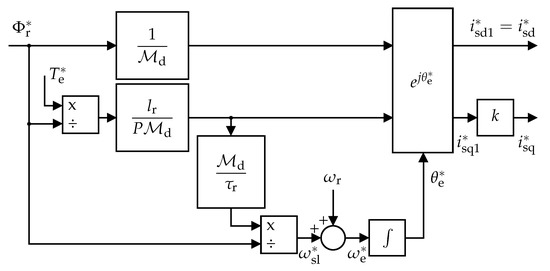 This control strategy for a motor system utilizing field orientation of the rotor flux was simulated. In this method, the control input references are the motor torque and flux. The direct and quadrature motor currents were subsequently calculated and imposed by the converter, as illustrated in Figure 10.