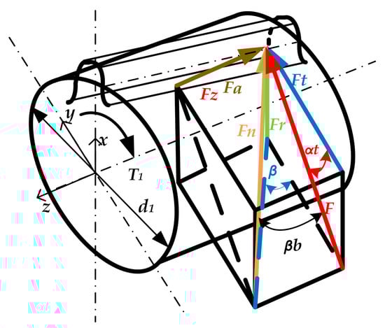 Helical gear load is usually decomposed into the axial force component , the radial force component , and the tangent force component . As shown in Figure 2, the force can be expressed as: