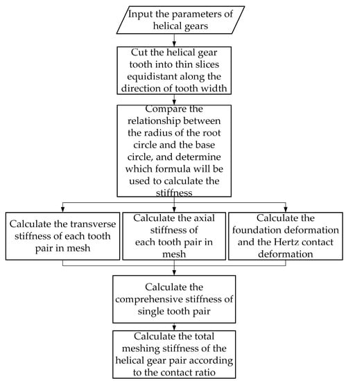 The calculation algorithm of the meshing stiffness is shown in Figure 9.