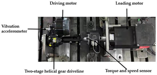 The main goal of this study was to analyse the dynamic characteristics of the Motor Two-Stage helical gear transmission system for electric vehicles. A dynamic model of a Motor Two-Stage transmission system in an electric vehicle was established, and a corresponding bench test was built. The influence of friction on the dynamic characteristics was analysed, and the difference in the dynamic characteristics after considering the axial stiffness components was also analysed. As a result, the change in the vibration and meshing force is presented after considering the friction and the axial stiffness components. This study provides a theoretical basis for analysing the dynamic characteristics of drivelines in electric vehicles.