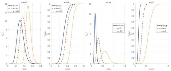 Figure 4 shows the density and distribution function plots of the normal range distribution under different m values.