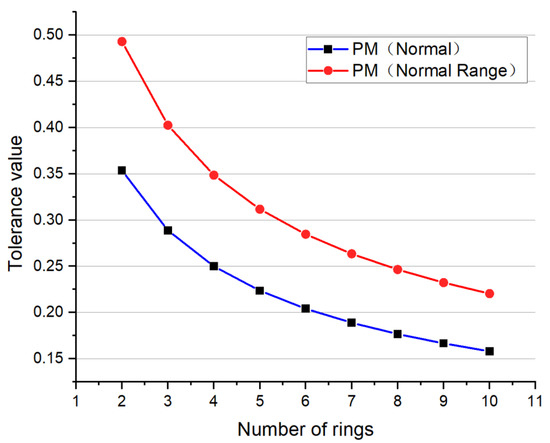 The tolerance values for different numbers of rings are obtained by Formula (22).