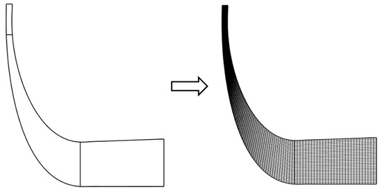 Radial-inflow turbine rotor meridional geometry and its body-fitted curvilinear mesh.