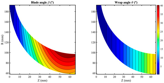 where α is all the blade surfaces, r, θ, and z are cylindrical coordinates, f is the blade camber, and B is the blade number. It should be noted that f represents the wrap angle of one single blade, while represents the wrap angles of all the blades.