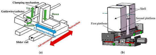- Peng, W.; Wang, Z.; Xie, H.; Gu, L. Design, development and evaluation of an ergonomically designed dual-use mechanism for robot-assisted cardiovascular intervention. Int. J. Comput. Assist. Radiol. Surg. 2023, 18, 205–216. [Google Scholar] [CrossRef]