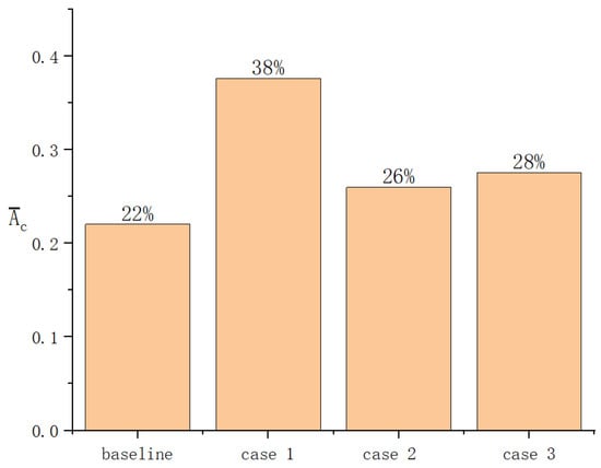 The distribution of the dimensionless effective cooling area () is depicted in Figure 9, which is defined as: