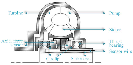 - A novel experimental method for testing axial forces in the hydraulic torque converter is proposed. The axial forces on the impellers within a closed-coupled wheelset are measured accurately through the arrangement of different sensors and circlip in the hydraulic torque converter.