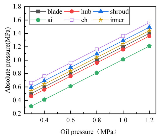 Variation of average pressure of each part of the pump with oil supply pressure.