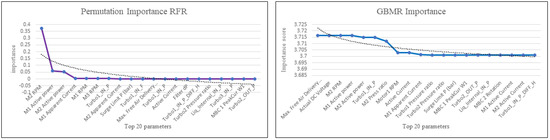 The GBMR method is validated by benchmarking it against a machine learning method known as the random forest regressor (RFR) with its associated Gini importance. RFR with Gini importance is a fast and accurate way of analyzing the feature importance in high dimensional data. The benchmarking process provides an estimate of the relevance of the important parameters. Gini provides a superior method of feature importance measurement than other methods such as PCA. The RFR and Gini optimizer provide a parameter ranking stored in XH(RFR). XH(RFR) is compared with XH to check the number of parameters declared important by both methods. It may not be a one hundred percent match. A threshold [t] is defined at this stage. If the match percentage is below [t], the mass functions and BPA from Equation (6) is reevaluated and the process is run again.
