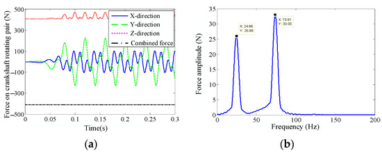 4.3. The Effect of Mass Asymmetry on the Force of Crankshaft Rotating Pair