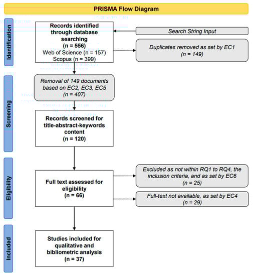 Two of the main academic databases were selected as sources of information, being Web of Science and Scopus. This selection was intended to combine the benefits of both databases, and was based on other publications that implement a similar selection within engineering research groups [9,11,29,30,31,32]. Apart from Scopus being owned by Elsevier and Web of Science by Clarivate, these databases offer a broad range of research publications.