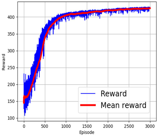 Different activation functions have been proposed in the field of machine learning [32,33]. The choice of the right activation function is dependent on the targeted use scenario of the learning algorithm. In this research, different activation functions were employed to identify the most appropriate function for use. The evaluated activation functions and corresponding computation expressions are shown in Table 3. The performance of the functions is as shown in Figure 2, Figure 3, Figure 4, Figure 5 and Figure 6. From the figures, ReLU, RBF, and Sigmoid reported the best training performance, as shown in the mean reward of Figure 2, Figure 3 and Figure 4, respectively.