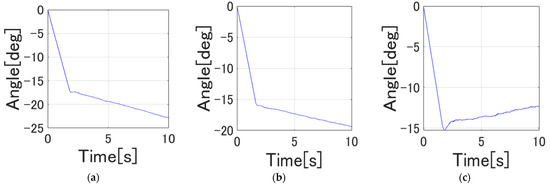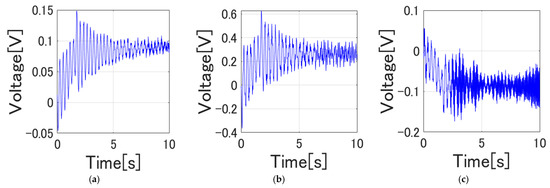 Figure 21 shows the time response of the root strain voltage of Link 1, Link 2, and Link 3, respectively. From Figure 21, the joint angles did not converge to the target values. In addition, from Figure 22, the steady strain in the in-plane direction of Link 1 and Link 2 is the same, and vibration tends to be suppressed to some extent.