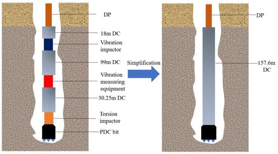In this paper, the influence of drill string vibration on wellbore stability is mainly studied, and the simulation mathematical model and the theoretical basis of wellbore stability are mainly described in Section 2. In Section 3, the modeling process and boundary conditions of drilling tool combinations are explained. In Section 4, according to the evaluation method of wellbore stability, the influence of different drilling tool combinations on wellbore stability is discussed. The main conclusions are presented in Section 5.