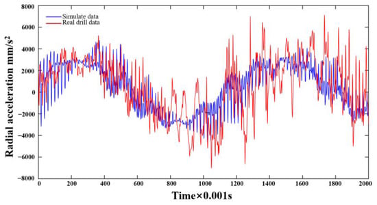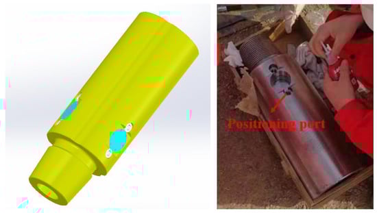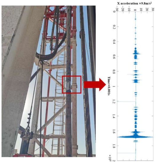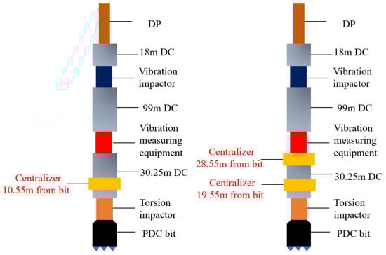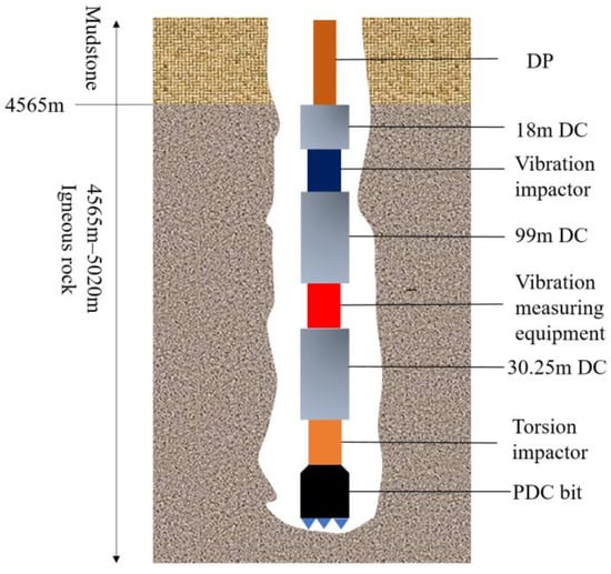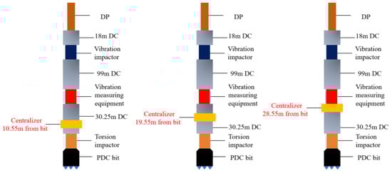 To minimize the influence of the shocker and torsion impactor on their measurement results, the measuring device was chosen to be positioned closer to the drill bit in this example, as shown in Figure 5.