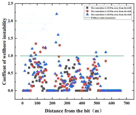 - When the single centralizer is placed close to the drill bit and the wellbore instability coefficient is low, the stability of the wellbore is improved compared with other situations;