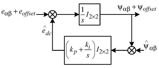 The voltage model uses a pure integration link, where the pole of the pure integration link is located at the origin, and the system is in marginal stability. Any small Doff input will ultimately lead to integration saturation and incorrect magnetic flux estimation. In the voltage model, this issue is typically resolved by passing the output of the pure integrator through a high-pass filter , where is the corner frequency.
