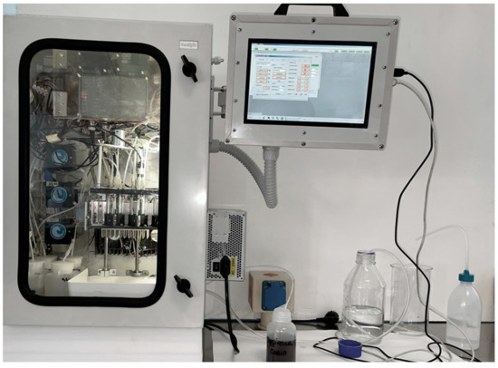 The power supply for the mechatronic components, PC, and monitor is 12 V cc, while that for the digital microcontrollers is 5 V cc. The general power supply for the device is by means of a 240 V ac switching power source. The three peristaltic pumps (related to brine, NaOH, and HCl) have 42 Stepper Motor tubes, allowing 0–160 mL/min flow rate.