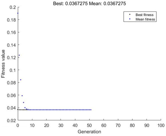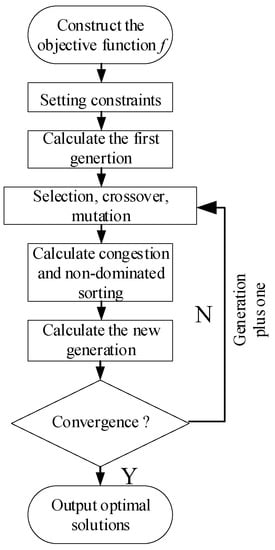 Genetic algorithms are a method of finding optimal solutions that mimic the evolution of natural organisms and can find optimal solutions in a global search relatively quickly. The genetic algorithm solution is not necessarily the same every time, and the optimal solution can be determined by solving multiple times. In this paper, a multi-objective genetic algorithm is used to solve for the optimal modification coefficients. The multi-objective genetic algorithm uses the operator of crowding to ensure the diversity of the solution set. The parameters for the solution of the multi-objective optimization algorithm in this paper are set as follows: the population size is 100, the optimal individual coefficient is 0.4, the maximum number of generations is 100, the crossover rate is 0.8, and the mutation rate is 0.1. The flow chart of the algorithm is shown in Figure 4. The compound modification uses a single-objective genetic algorithm, and the optimization process does not have the operator of crowding.