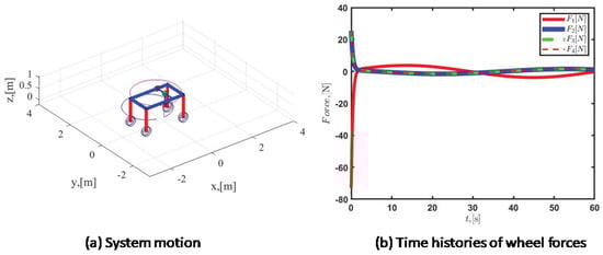 These simulation analyses provide valuable insights into the performance and capabilities of the proposed model. They allow for the identification of potential limitations and areas for improvement, aiding in the refinement of the design and optimization of the robot’s performance in real-world agricultural environments. Additionally, the ADAMS model is utilized to validate the dynamic model derived using Newton–Euler’s method. This validation process ensures the accuracy and reliability of the proposed model, thereby enabling its application in model-based system control schemes.