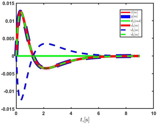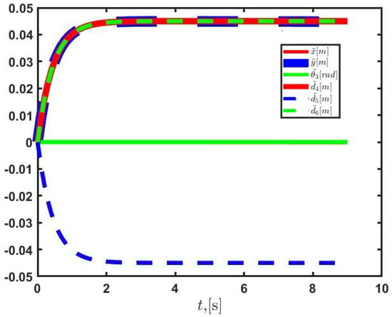 Figure 7. It has been noticed that during the PD control, the error value in terms of X and Y coordinate variation with the desired value has attained a value of 0.04 m and the error value remains fixed after two seconds, remaining constant for the rest of the defined path. However, during PD-like sliding mode control, the error value rapidly increased for one second and subsequently attained a value of zero after 5 s, as depicted in
