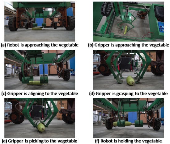 72], to efficiently carry out the harvesting process in the field. The current paper concentrates on the harvesting and handling of heavy fruits with cylindrical, ellipsoidal, and spherical shapes on flat terrain, while also being capable of navigating some minor rough terrains. Moreover, the proposed end-effector has the potential to be utilized for weed removal based on visual feedback, although this aspect remains a subject for further research due to the prototype’s limited sensing capabilities.