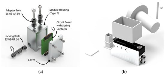 (a) Exploded view of a type B module; (b) Representation of the configuration problem.