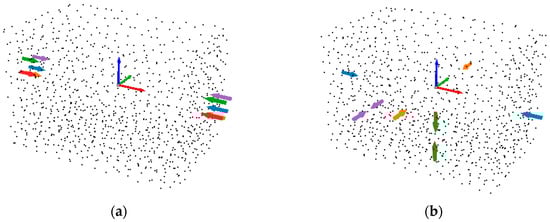 (a) The best five grasp positions for an object; (b) The adjusted best five grasp positions for an object.