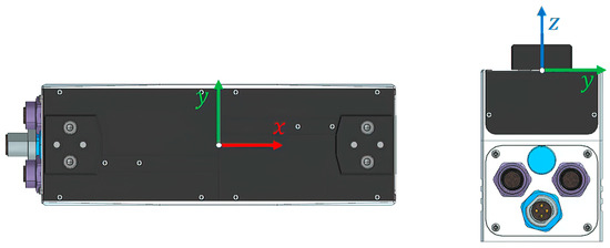 For the module “C_2” shown in Figure 12, the change in the orientation of the reference system with respect to the reference system is described by a rotation of +90° around the x-axis. The corresponding rotation matrix results in: