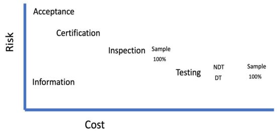 The next approach is certification. The producer of the product goes through a certification process that attests to the following of a specific process that will result each and every time in producing products that meet the requisite requirements of MQC. The certification process may be one time or on some periodic basis. The risk decreases, but the cost will increase using this approach. The customer is still relying on the assumptions that the product producer will follow the process that is required by the certification and that following the process will result in a conforming product. Certifications are not free so the product producer will increase the price of the product as a result.