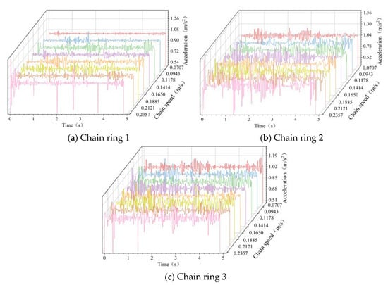 Under different chain speeds, the acceleration changes of the chain ring in the transverse direction were counted, as shown in Figure 5.
