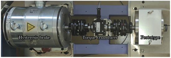 The variable-flux characteristics induced by magnetic saturation in the proposed motor is verified experimentally. A prototype has been constructed for PROP, as shown in Figure 14. The dimensions are presented in Table 1. The stator coils have been wound with four conductors whose diameter is in parallel. Figure 15 shows the experimental setup. The prototype is connected with a hysteresis brake through a torque transducer. No-load EMF, static torque, and variable-flux characteristics are measured and compared with those obtained in the FEM analysis.