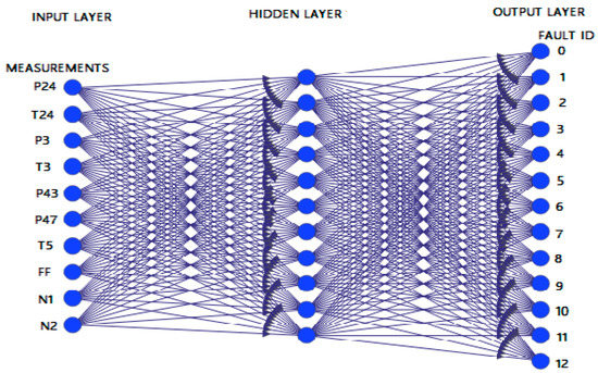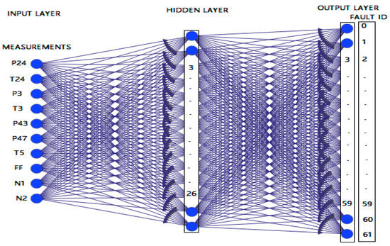 A three-shaft gas turbine diagnosis model was developed using artificial neural network by Loboda et al. [83]. The study conducted a comparison between two types of networks: a multilayer perceptron and a radial basis network. The multilayer perceptron is commonly used for gas turbine fault recognition, while some studies have highlighted the strong recognition capabilities of the radial basis network. Both networks were included in the study to assess their performance. The results indicate that the radial basis network is slightly more accurate than the perceptron. However, it requires significantly more computer memory and computation time compared to the perceptron. The study was on limited fault detection at full-load operation. Sina et al. [84] investigated a dynamic neural network based on the multilayer perceptron network for three-shaft gas turbine diagnostics. The detection and isolation process involved determining the difference between each network’s output and the measured engine output, which generated residuals. These residuals were then used to effectively diagnose faults. However, the study was still limited to single fault diagnostics at full-load operation. In another study, diagnostics development using artificial neural network for a three-shaft gas turbine was conducted by Mustagime and Kurt [85]. In this study, the authors developed a regression model to investigate the relationship between flight parameters and the Exhaust Gas Temperature (EGT) parameter. To accomplish this, they utilized multiple regression analysis, which allowed them to analyze how various flight parameters impact the EGT parameter. Finally, they proposed an advanced computational technique for accurate identification.