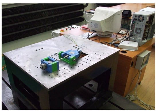 The frame is robust and can serve as a supportive structure for the testing device, enabling the experimental determination of fatigue characteristics. Currently, the testing device provides a significant volume of valuable data concerning the fatigue life of diverse materials [,,,].