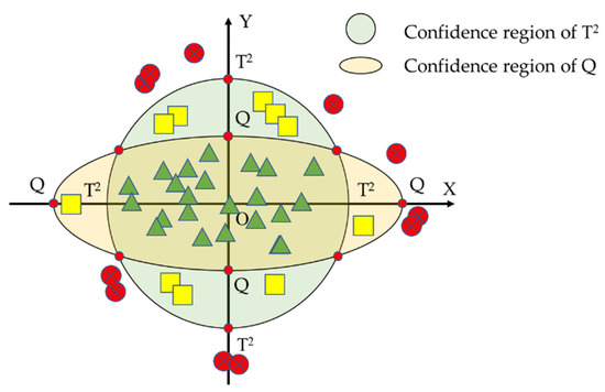 Two statistical indicators, T2 and Q, can be used to monitor multiple sources of data in production operations. Figure 3 provides a visual representation of how PCA functions, which can provide a more comprehensive understanding of the process.