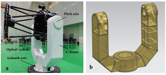 (a) Structure of the telescope; (b) structure of the original U-frame.