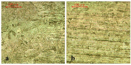 (a) The high-magnification metallographic structure at the weld metal; and (b) the high-magnification metallographic structure at the base metal.