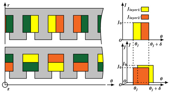 Regarding coil magnetization, when using a double-layer winding, there are two methods of winding organization: overlapping winding for distributed winding and non-overlapping winding for concentrated winding. Figure 3 provides an illustration of how the coil is accommodated in the slot for each of these methods.