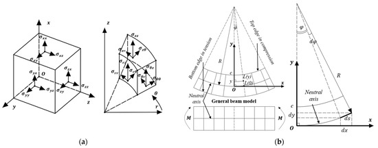 (a) The stress tensor in a 3D space and . (b) The general beam.