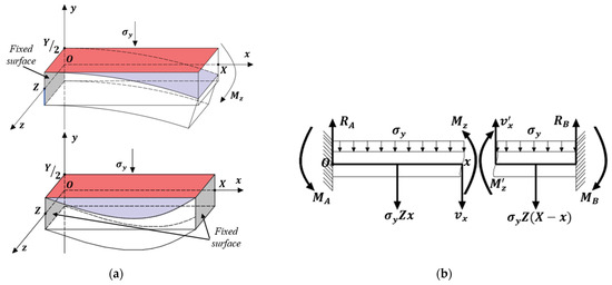 The model depicted in Figure 5b is commonly known as the Euler–Bernoulli beam, which assumes that both sides of the beam are free. However, in reality, in machines, one or both sides of the beam shown in Figure 6 may be fixed. This difference between mathematical computation and finite element method (FEM) simulation introduces a significant error, especially when the y-axis thickness (Y) is sufficiently large.
