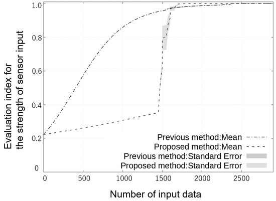Evaluation of the strength of the sensor input for the previous and proposed methods for the 1000th trial in the experiment.