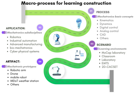 In contrast, the microscopic-level strategies require investment in the infrastructure of the universities and training, which, in most cases, is beyond the reach of their budget. An approach used by universities to reduce the budget in the microscopic-level strategy comprises the design of complementary contents based on the science, technology, engineering, arts, and mathematics (STEAM) paradigm and educational robotics [17]. This approach is focused on the development of soft and hard skills through the use of robots with previously designed structures or mechanisms. It is worth noting that this approach does not consider the construction of basic mechatronics concepts by students [18]. Therefore, they are not able to develop complex solutions, such as they are required today due to the uncertainty and exponential growth of technology and the problems of I4.0.