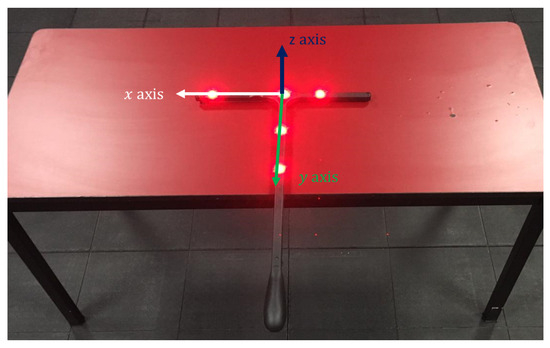 After that, the Vicon Tracker software sends the results of the process calibration. If the results are not satisfactory, then the calibration process must be repeated until the results are correct. Then, the last step is to position the wand where the user wants to define as the origin of the workspace in the MoCap system of coordinates (see Figure 9).